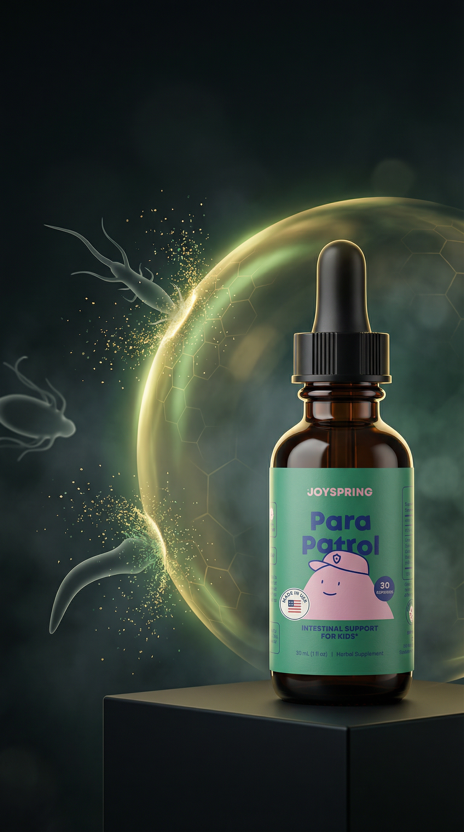 Para Patrol limpia y protege su intestino con una poderosa mezcla herbal infantil que ayuda a expulsar parásitos, aliviar la barriguita y devolver el apetito, el descanso y la energía que su cuerpo necesita para crecer feliz.